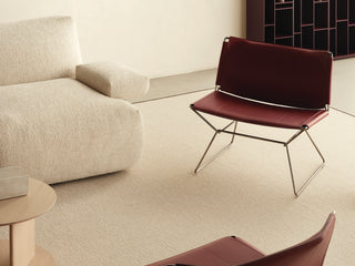Elegant and refined, Neil Leather armchair is defined by a steel wire frame that outlines a clean, essential structure, enhanced by a full-grain leather cover stretched between the metal profiles to offer unexpected comfort.