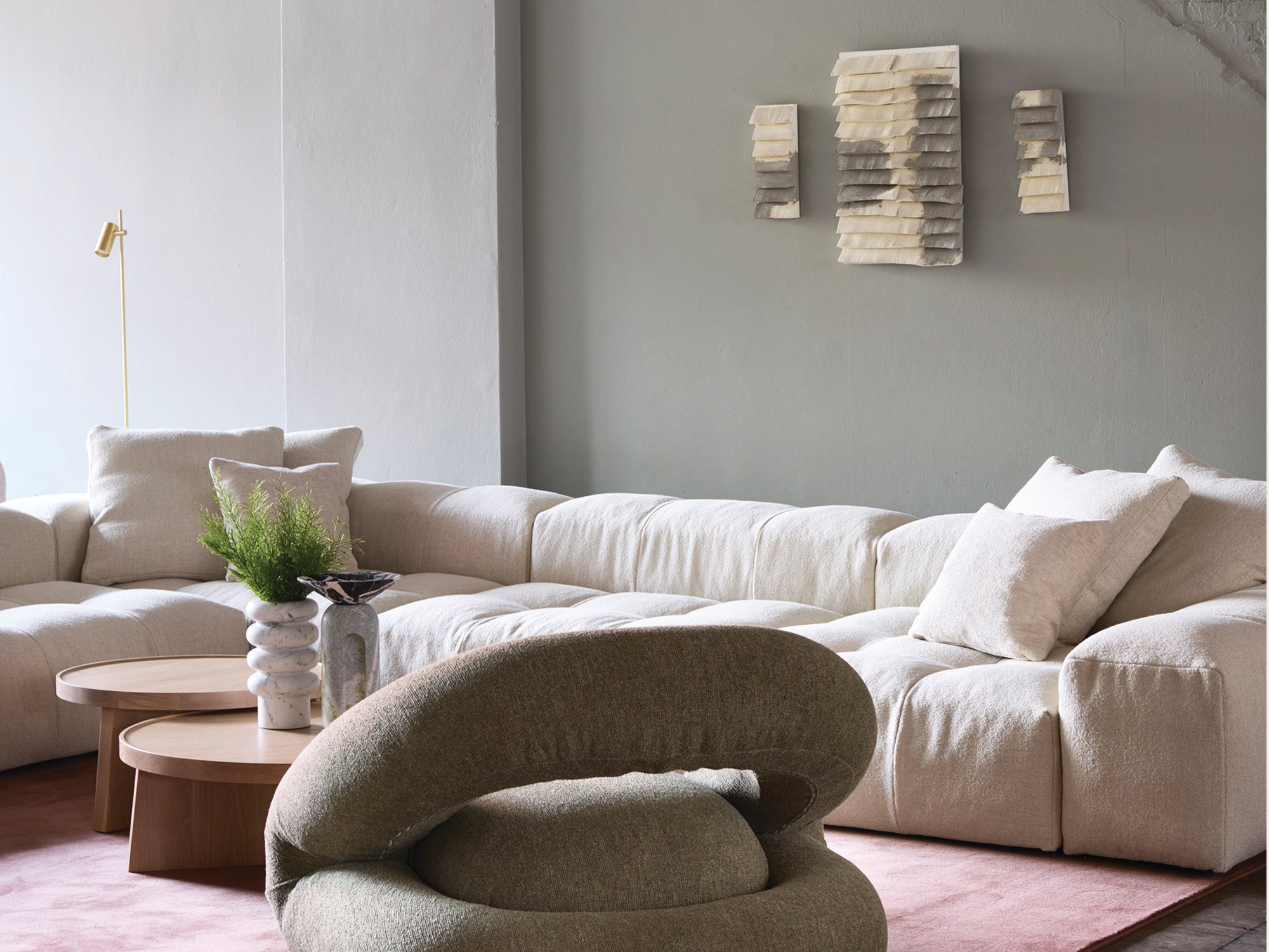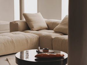 The arm and back rests can be detached from the base to create endless new arrangements. The feather-padded seat cushions can be upholstered with a patchwork cover highlighting the limitless possibilities of personalisation when choosing a Saba sofa.